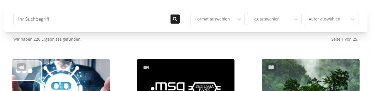 - die Filtermöglichkeiten nach Format, Tags und Autoren sowie