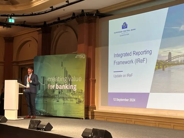 Ein Topthema im Meldewesen der nächsten Jahre, das die Banken herausfordert, ist Integrated Reporting Framework (IReF). Hierzu gab Michael Kosiahn, Ökonom/Statistiker bei der Deutschen Bundesbank und auch bei der Europäischen Zentralbank tätig, den Teilnehmerinnen und Teilnehmer ein Update zu den aktuellen Ergebnissen und Diskussionsschwerpunkten der Arbeitsgruppen rund um IReF. Kosiahn arbeitet als Mitglied des IReF Project Office am logischen Datenmodell des IReF und nimmt an verschiedenen Arbeitsgruppen zum Thema semantische Integration von Metadaten teil.