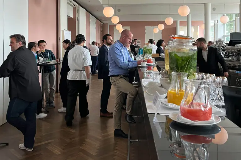 Auch nach dem offiziellen Programm nutzen viele Teilnehmerinnen und Teilnehmer die Gelegenheit, relevante Themen mit den Experten von msg for banking in kleiner, informeller Runde zu vertiefen.